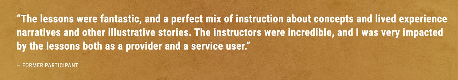 This curriculum exists because too much of what gets called “mental health” has been stripped of history, relationship, and power. IDHA’s Transformative Mental Health Core Curriculum brings us back to a more honest ground—one that understands distress not as individual failure, but as something shaped by racism, ableism, violence, dislocation, and survival. It weaves together lived experience, movement knowledge, and practical tools to help us think, feel, and act differently—locally, relationally, and with care. Over eight modules, the curriculum invites us to see mental health as something we practice together, rooted in dignity, connection, and the possibility of real transformation in our lives and work